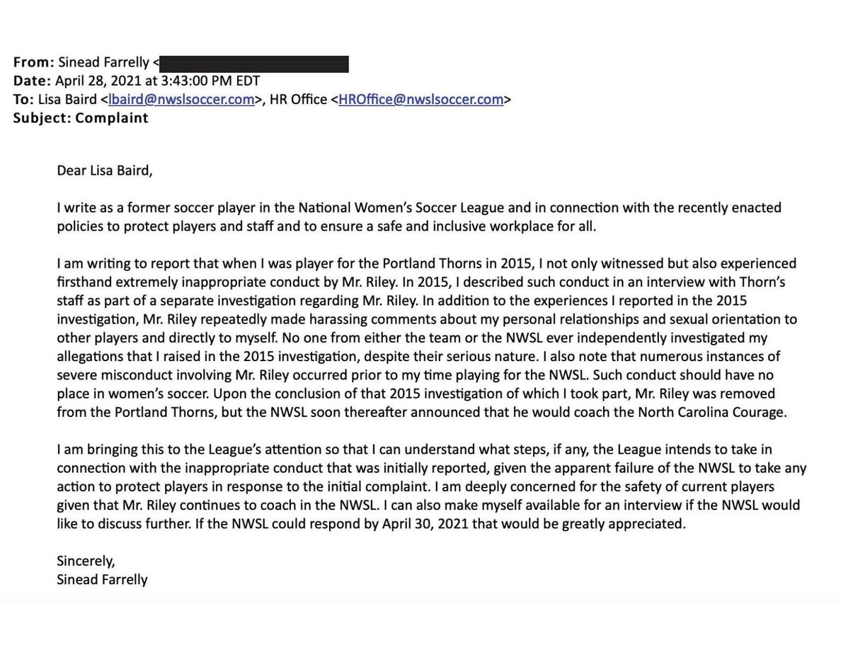 No obstante, es una tendencia. Farrelly se encontró con Riley en tres equipos diferentes de la NWSL desde 2011 y el común denominador fue el acoso. Ambas jugadoras compartieron distintas experiencias que van desde haber sido llamadas por el entrenador a su cuarto de hotel o forzadas a sentarse en sus piernas para “evitar” que todo el plantel realizara ciertos ejercicios en el entrenamiento del día siguiente, hasta que él las tocara sin su consentimiento.