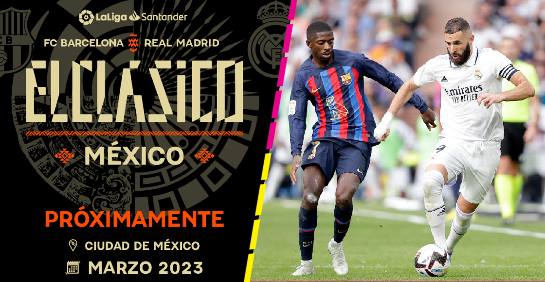 En una imagen que compartieron por la mañana, anunciaban El Clásico en México para marzo de este 2023. Sí, Real Madrid contra Barcelona en la Ciudad de México; sin dar más detalles pero prometiendo info próximamente.