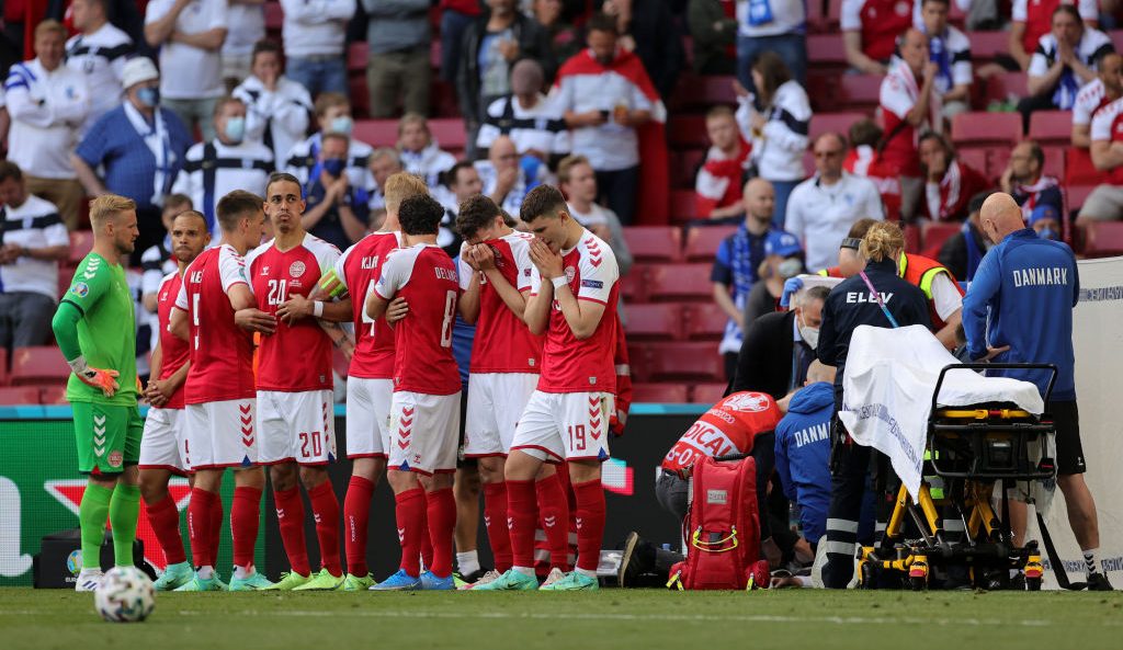 Al ver el impacto se pidió el ingreso de las asistencias, que tardaron aproximadamente 20 segundos. Aunque los médicos trabajaron lo antes posible, el resto de los jugadores daneses rompió en llanto mientras formaban una barrera para cuidar a Christian Eriksen.