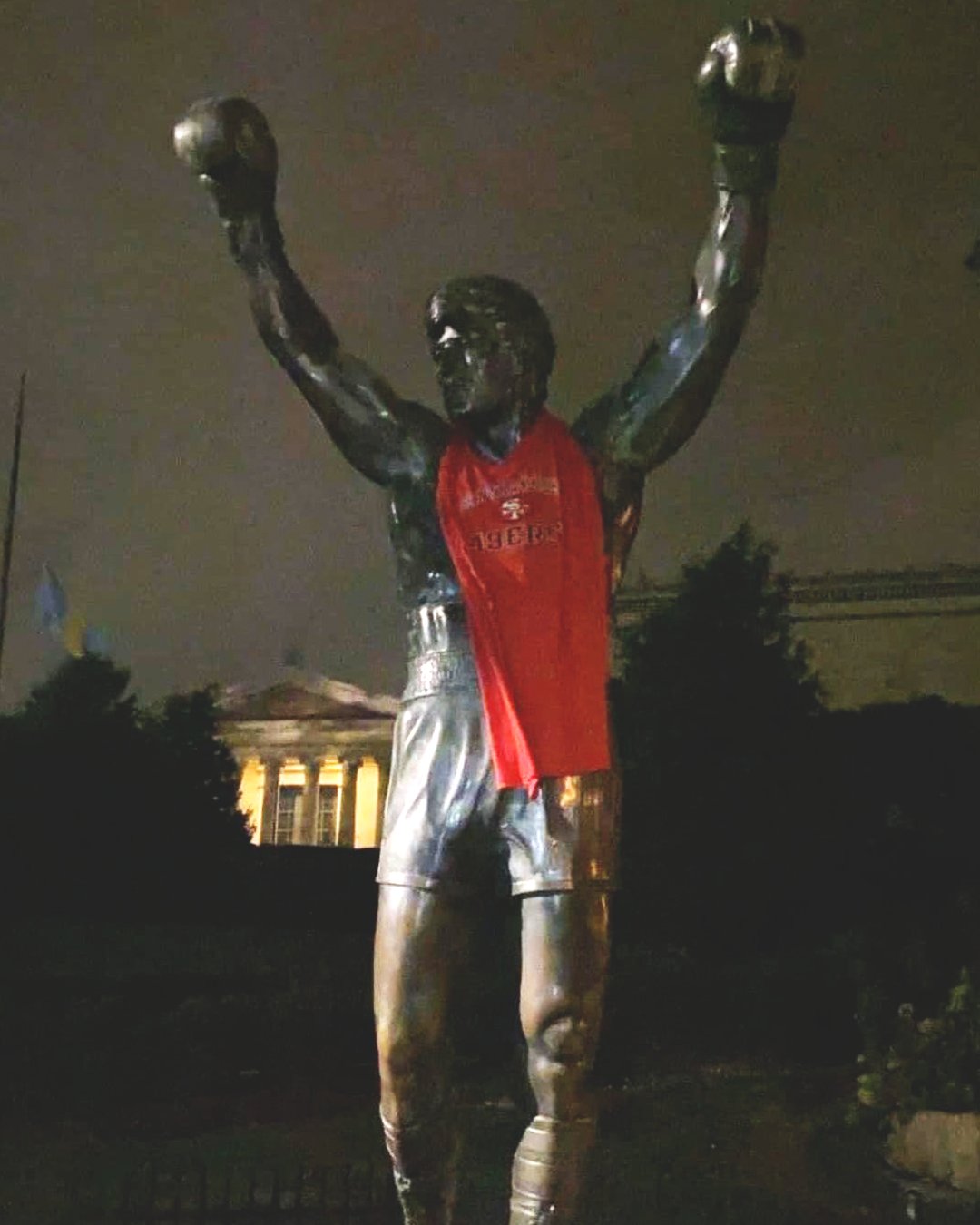 La estatua de Rocky Balboa lució los colores de los 49ers… tsssss Eagles, eso duele