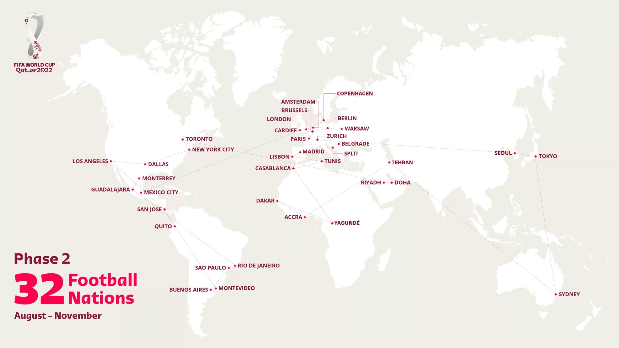 México forma parte de la Fase 2 del Trophy Tour, la cual comenzó en Seúl (Corea del Sur) tras un evento celebrado en Suiza, sede de la FIFA. La idea de esta segunda fase es recorrer ahora sí los 32 países que se clasificaron para Qatar 2022.