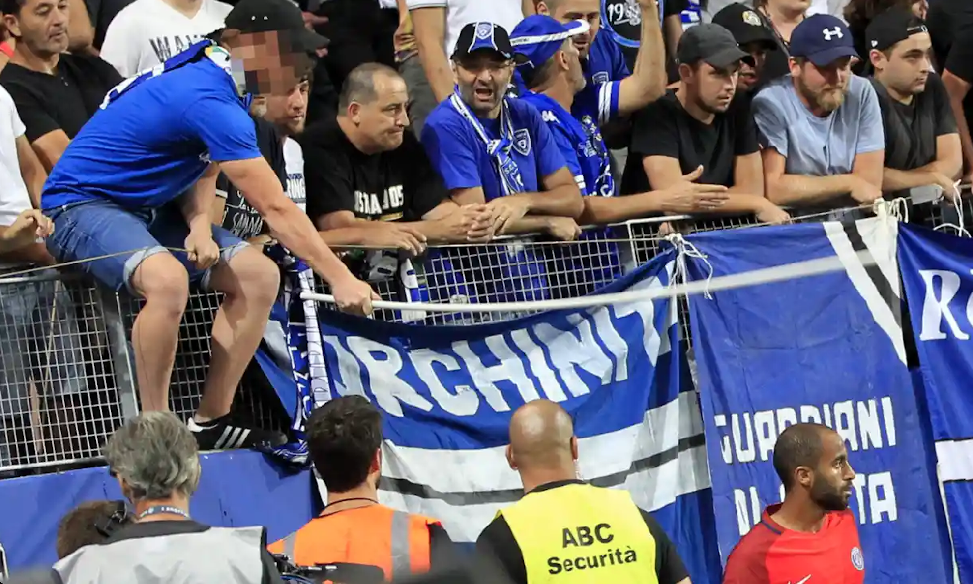 En 2016, por ejemplo, un aficionado del Bastia golpeó descaradamente a Lucas Moura, del PSG, con un palo aprovechando la cercanía de las tribuna con la cancha, cuando el jugador se disponía a cobrar un tiro de esquina.