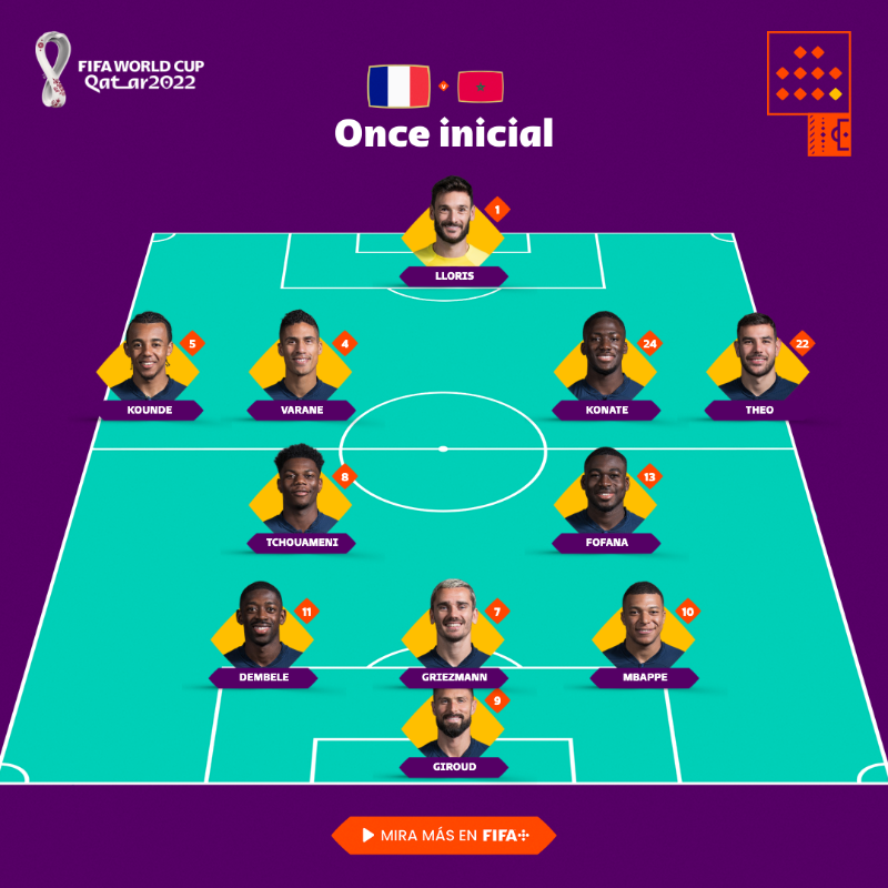 Francia está en las semifinales después de despachar a la Polonia de Lewandowski y a la Inglaterra de Harry Kane, además se perfila para ser la selección que más dolores de cabeza le pueda dar a la Selección de Marruecos, que basa su éxito mundialista en una apuesta ultra defensiva, la cual le ha permitido recibir solo un gol en el Mundial.