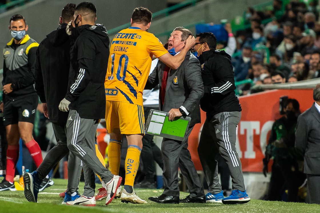 André-Pierre Gignac rescató a Tigres en la cancha del Corona con un golazo desde fuera del área y con el cual los felinos descontaron a Santos que ganaba por dos goles de diferencia y tendrá que ir al Volcán con una desventaja de 2-1.