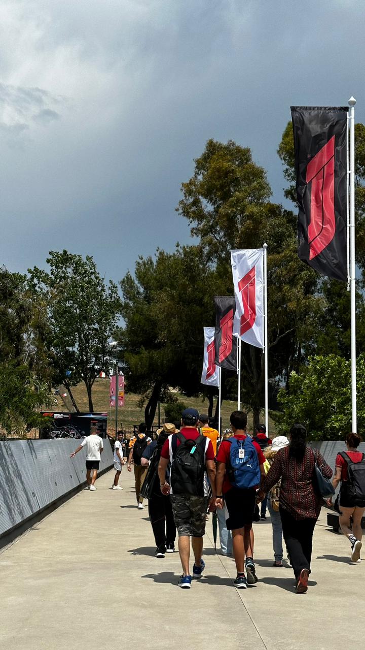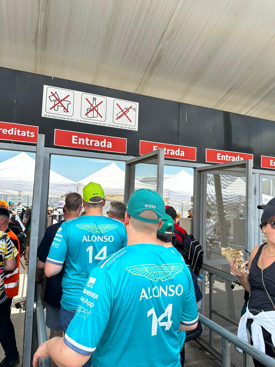 Los aficionados españoles han revivido la pasión por Fernando Alonso, y muchos han cambiado las playeras de Ferrari y Alpine por las de Aston Martin, lo cual nos recuerda un poco el ambiente en el Hermanos Rodriguez con Checo Pére. Desde que entramos al circuito encontramos mucha banda con playeras de Aston Martín.