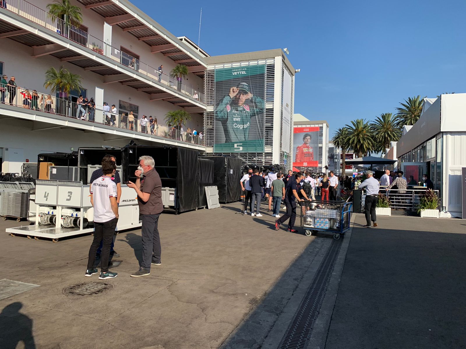 Apenas comenzó la carrera del Gran Premio de México y el personal de las escuderías de la Fórmula 1 comenzó a desmontar todas aquellas zonas y piezas que ya no necesitaban para empacar y embarcar cuanto antes.