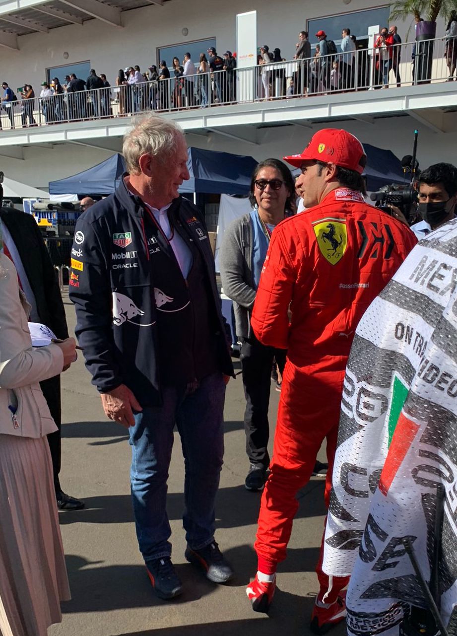 En la Fórmula 1, uno de los personajes más imponentes es Helmut Marko, el asesor de Red Bull, y quien fue el principal responsable del fichaje del mexicano. El dirigente de la escudería estuvo muy contento el sábado, al lado de Antonio López Garibay, padre de checo, y Carlos Slim Domit, previo a la sesión de calificación del sábado.
