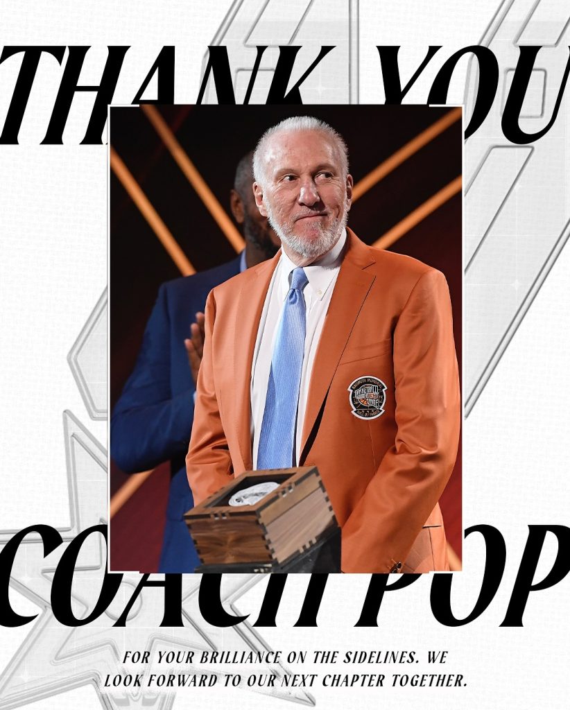 “El extraordinario impacto del entrenador Pop en nuestra familia, San Antonio, los Spurs y el baloncesto es profundo. Sus premios no hacen justicia al impacto que ha tenido en tantas personas. Es verdaderamente único como persona, líder y entrenador. Toda nuestra familia, junto con los aficionados de todo el mundo, le agradecemos sus extraordinarios 29 años como entrenador principal de los San Antonio Spurs”, dijo Peter J. Holt, socio director de los Spurs.