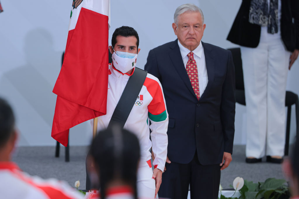 El abanderamiento de la delegación mexicana que irá a Tokio 2020 también contó con la presencia de Carlos Padilla, titular del Comité Olímpico Mexicano, Delfina Gómez, titular de la Secretaría de Educación Pública (SEP) y el embajador de Japón en México Yasushi Takase.