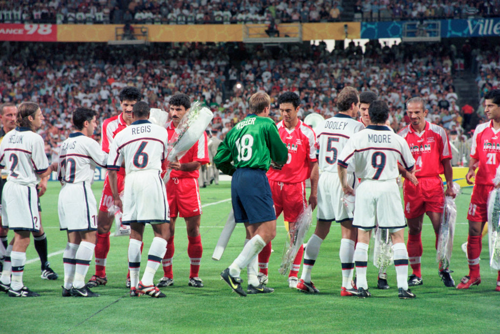 El 4 de diciembre de 1997 se realizó el sorteo de la fase de grupos del Mundial de Francia, y tanto Irán como Estados Unidos quedaron emparejados en el Grupo F, junto a Alemania y a la extinta Yugoslavia. Casi un mes después, el presidente de Irán en ese entonces, Mohammad Khatami, comenzó un movimiento de tregua en el conflicto con Estados Unidos a través de una entrevista a CNN el 7 de enero de 1998.