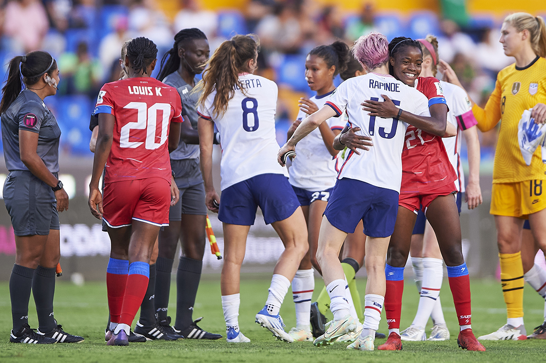 La defensora haitiana que milita en el Stade de Reims tuvo minutos en el duelo contra las estadounidenses. El resultado no fue favorable para su equipo; no obstante, al final del encuentro hubo sonrisas con sus rivales e incluso intercambio de palabras y jerseys.