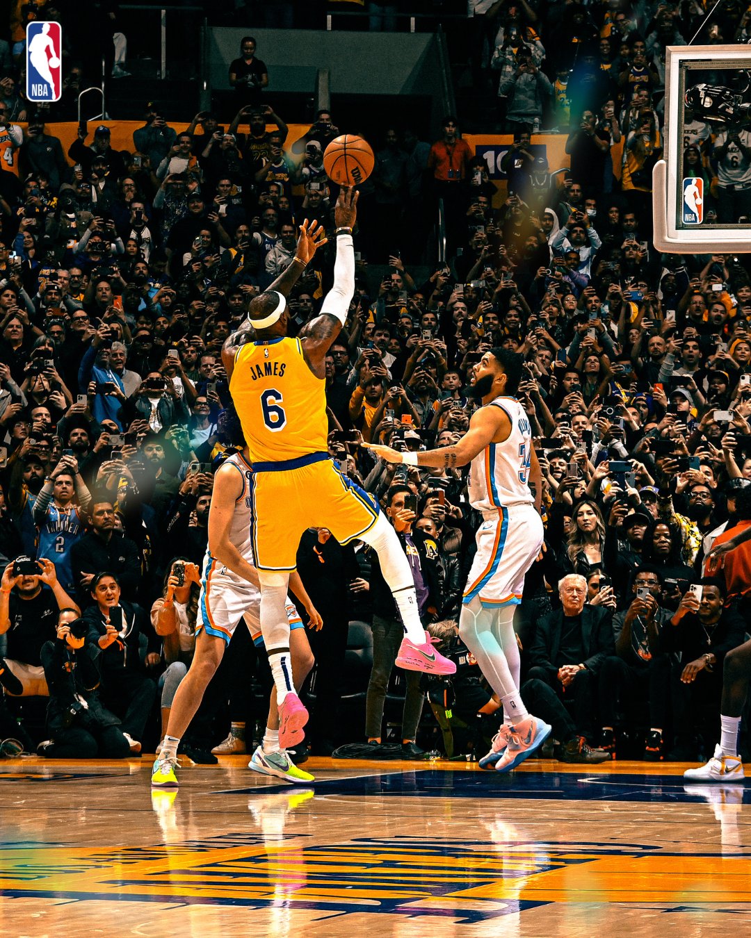 La cifra que tanto perseguía LeBron James llegó en el último cuarto ante el Thunder, y en cuanto encontró el aro para superar los 38 mil 382 puntos de Kareem Abdul-Jabbar, el Staples Center se convirtió en una fiesta.