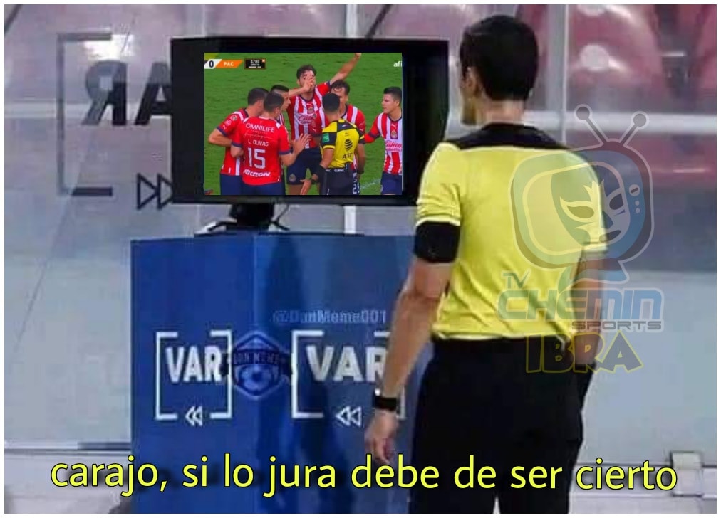 Punto y aparte merece Antonio ‘Pollo’ Briseño, quien nos regaló una imagen para el recuerdo y que es protagonista de los memes, pues después de una jugada ofensiva de Chivas, el zaguero juraba al silbante que había un penal para el equipo rojiblanco por una mano, y si lo jura es que es real… lo malo es que Alexis Vega falló la pena máxima.