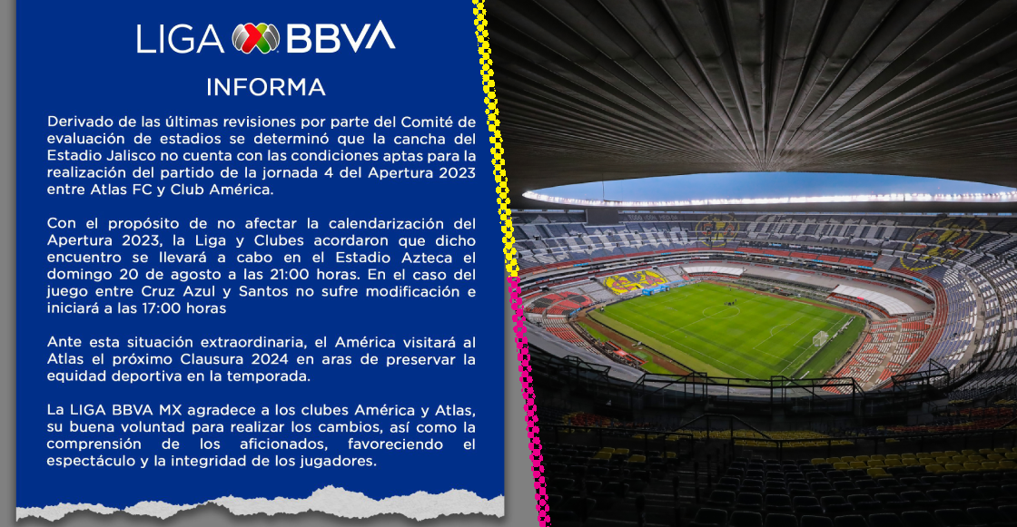 Entonces, la siempre bien ponderada Liga MX, se aventó la puntada de mandar el Atlas vs América del Estadio Jalisco al Estadio Azteca el domingo 20, aunque se medio encime con el de la máquina.
