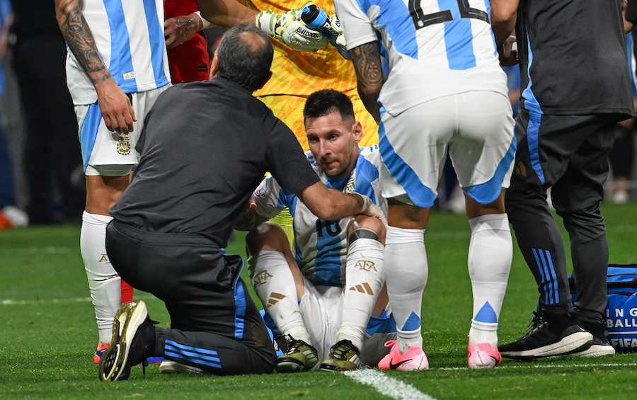 En los últimos minutos, Messi prendió las alarmas después de un fuerte impacto en la rodilla izquierda tras un encontronazo con Moïse Bombito, pero el el argentino se pudo levantar tras recibir atención médica. No fue el mejor día para el 10.