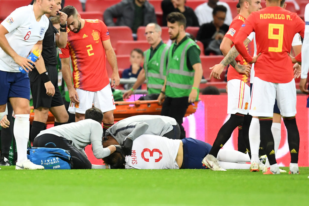 Luke Shaw, jugador de la Selección de Inglaterra, tuvo que abandonar el partido contra la Selección de España en actividad de la UEFA Nations League, debido a un fuerte encontronazo con el ibérico Dani Carvajal al inicio del segundo tiempo.