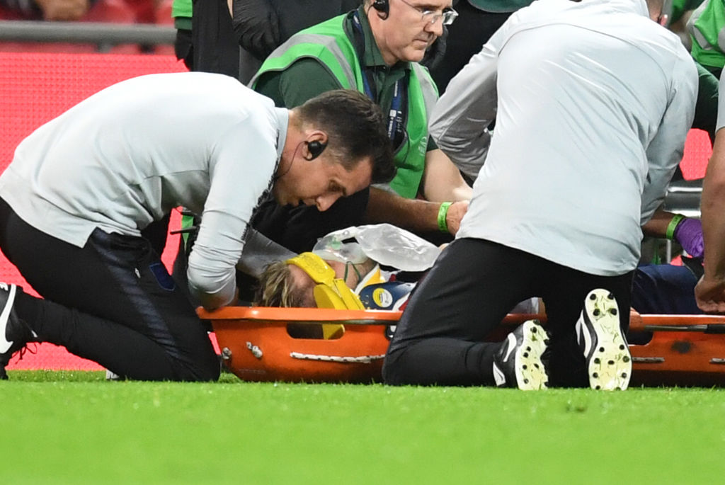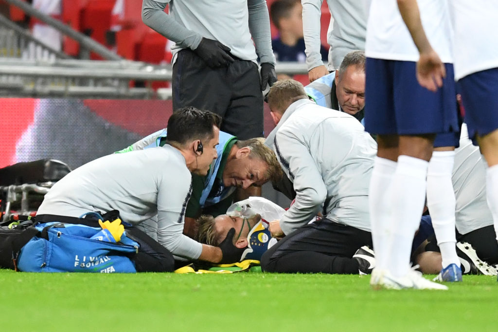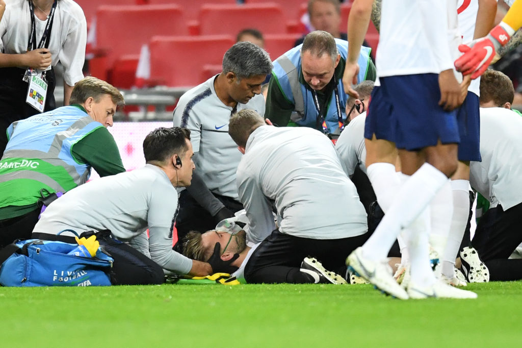 El zaguero inglés, quien hace unos días confesó que pudo perder la pierna tras la fractura sufrida tras una entrada del mexicano Héctor Moreno en la Champions League, prendió las alarmas en Wembley tras caer noqueado tras una jugada fortuita.