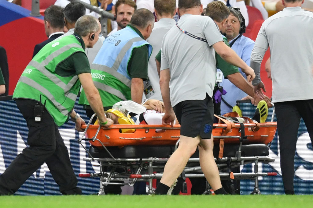 El inglés chocó con el hombro de Carvajal y después se golpeó la cabeza de forma brutal contra el césped. El juego fue detenido de inmediato para permitir el ingreso de las asistencias médicas.