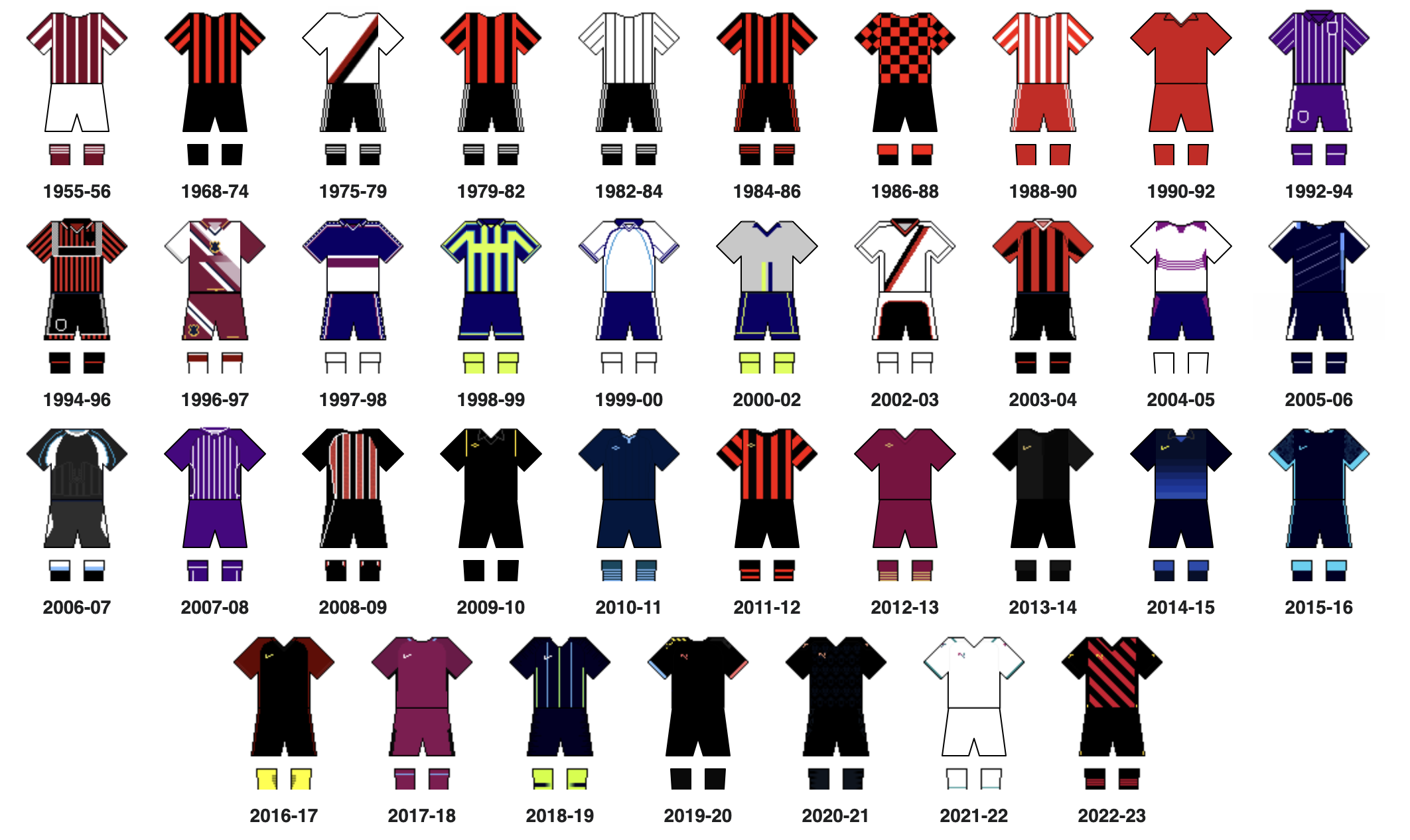 El uniforme “rossonero” se ha convertido en una especie de amuleto para el Manchester City y de hecho nació con esa finalidad, aunque a lo largo de la historia no siempre ha sido la combinación oficial el uniforme de visitante y de hecho desde la llegada de Josep Guardiola a la dirección técnica, el equipo no había vestido esta combinación hasta la temporada 2022-23.