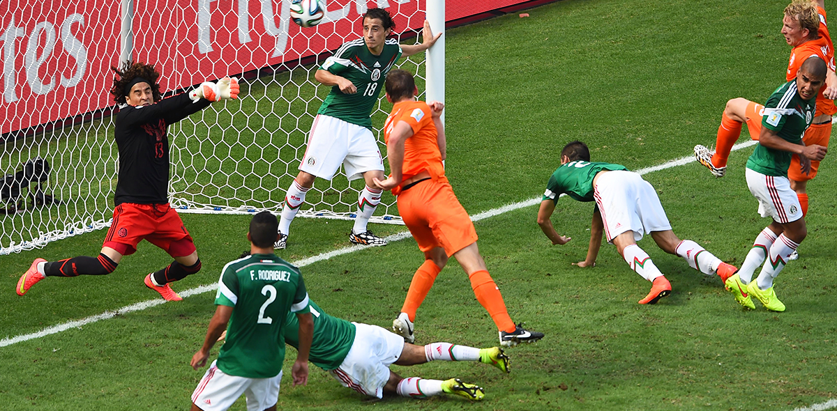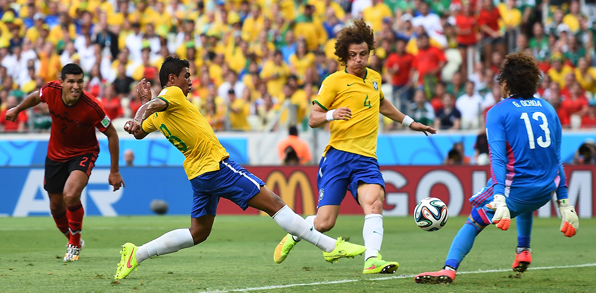 Esta es sin duda la mejor atajada en la carrera del guardameta. Era el segundo partido de México en el Mundial de Brasil 2014 y enfrentaba al anfitrión.