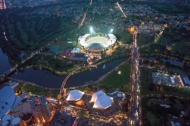 Construido originalmente en 1871, el Estadio Oval de Adelaide, en Australia, se sometió a una completa reconstrucción, que le ha dejado listo para albergar partidos de Cricket, Rugby, Futbol Soccer y por supuesto conciertos, con una capacidad superior a las 50 mil personas.