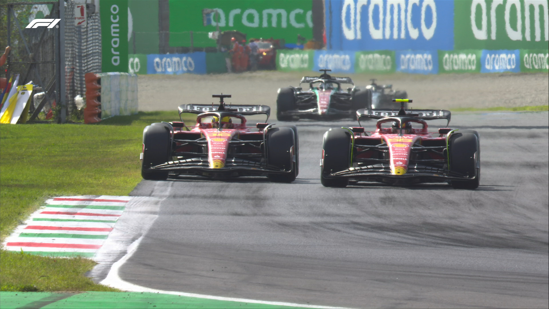 Carlos Sainz, quien largó desde la pole position, mantuvo a raya a Max Verstappen a lo largo de 15 vueltas, hasta que el neerlandés se lo chamaqueó, en gran parte gracias la degradación de neumáticos del Ferrari y de pasar a la lucha por el triunfo, Sainz terminó peleando con Charles Leclerc por el tercer sitio, pese a que en la escudería les pidieron no pelear.
