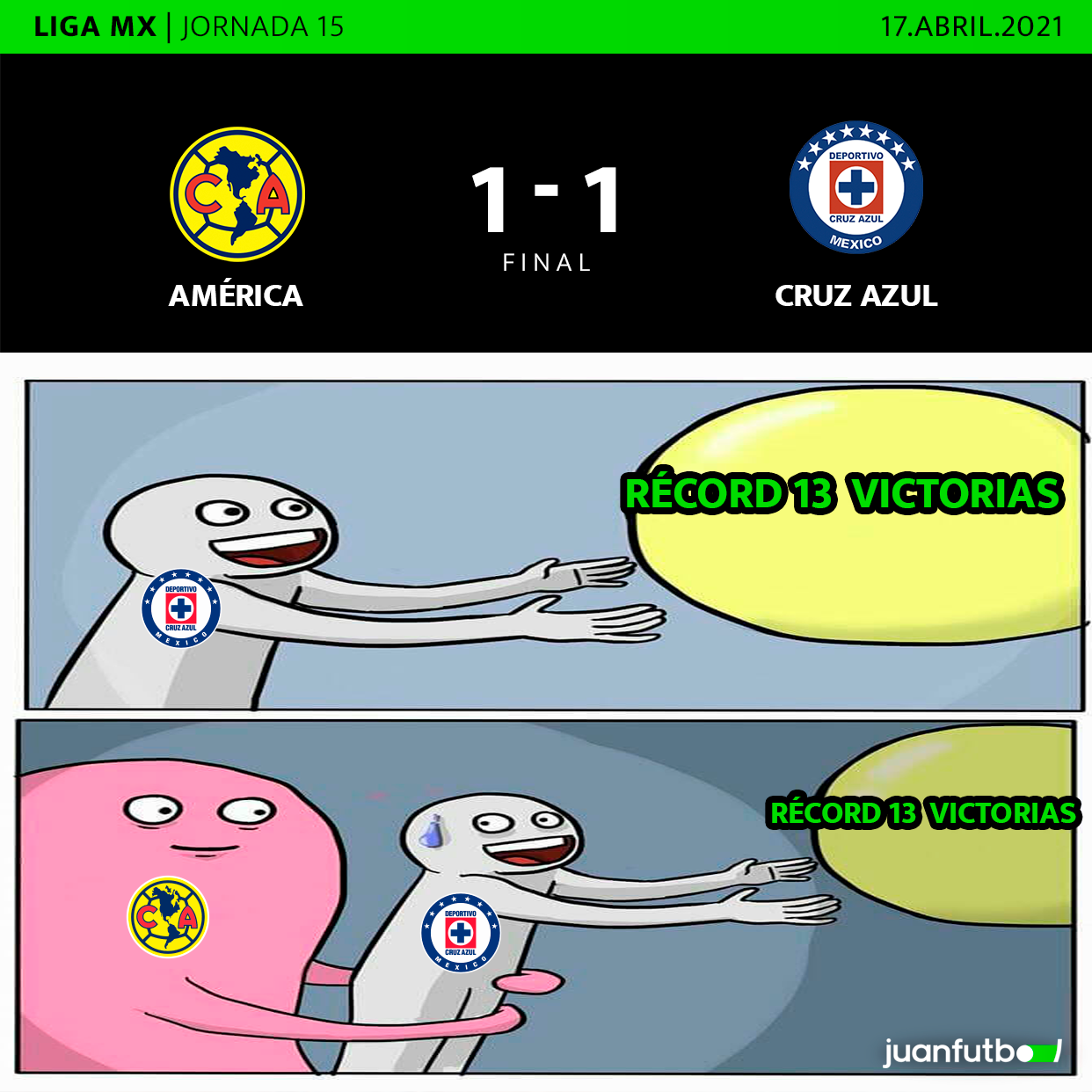 Se decía que el juego entre América y Cruz Azul era la final adelantada del Guardianes 2021 y La Máquina al menos ya no la perdió. El equipo cementero perdió la racha más importante de su historia, pero tiene el liderato tras empatar en los últimos minutos gracias a un penal polémico.