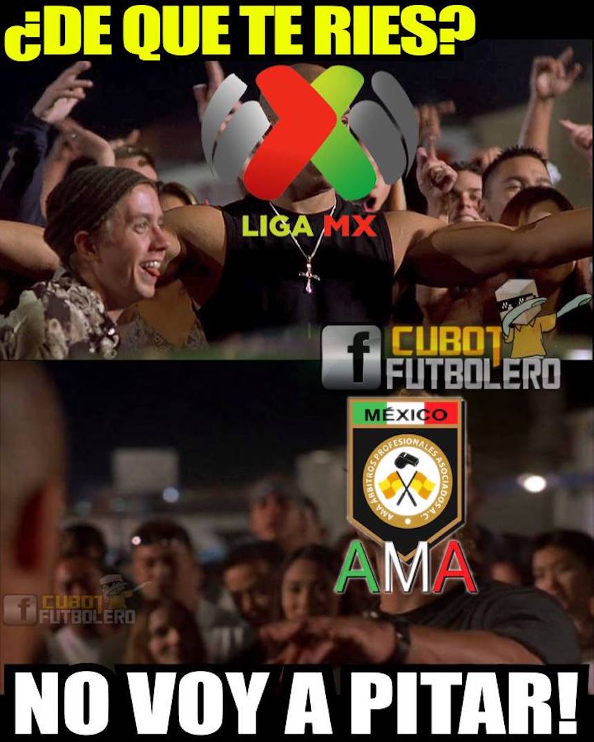 Molestos por la decisión de la Comisión Disciplinaria de no suspender al menos por seis meses a Aguilar y Triverio, los nazarenos decidieron irse a ‘huelga’ y no pitar la jornada 10 de la Liga MX como protesta. De inmediato se encendieron las alarmas en la Federación, Luis Enrique Santander y su cuerpo arbitral abandonaron el Luis ‘Pirata’ Fuente y el partido entre Veracruz y Puebla– que ya de por sí se iba a jugar a puerta cerrada- fue suspendido. Horas más tarde se confirmó que la fecha 10 se suspendió en su totalidad debido a que” los silbantes no prestarán sus servicios”. Lo anterior fue un hecho histórico. Igual este fin de semana no tendremos futbol mexicano y el internet explotó de humor con estos imperdibles memes.