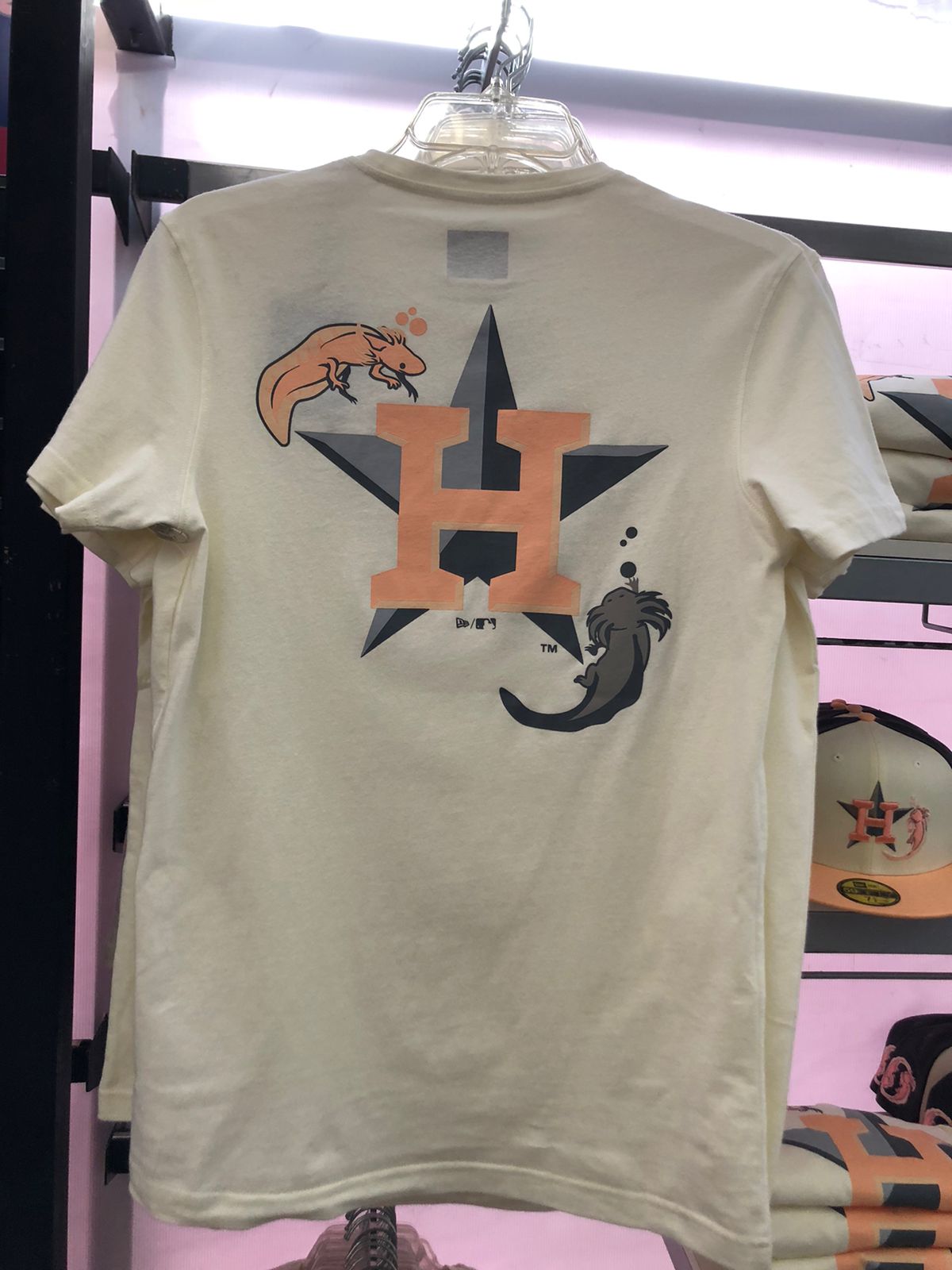 De hecho, hay toda una línea de playeras, gorras y sudaderas donde los ajolotes acompañan los logos de Houston y Colorado, y neta son una maravilla.