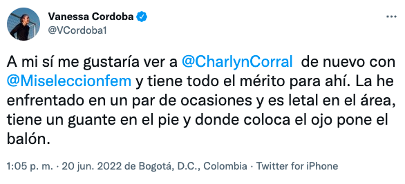 En la misma conferencia, Mónica Vergara aseguró que Charlyn Corral no está convocada por el nivel de sus compañeras. Y si bien es cierto que los números hablan por sí solos, la ‘Pichichi’ hizo lo propio en el Apertura 2022 como subcampeona de goleo.