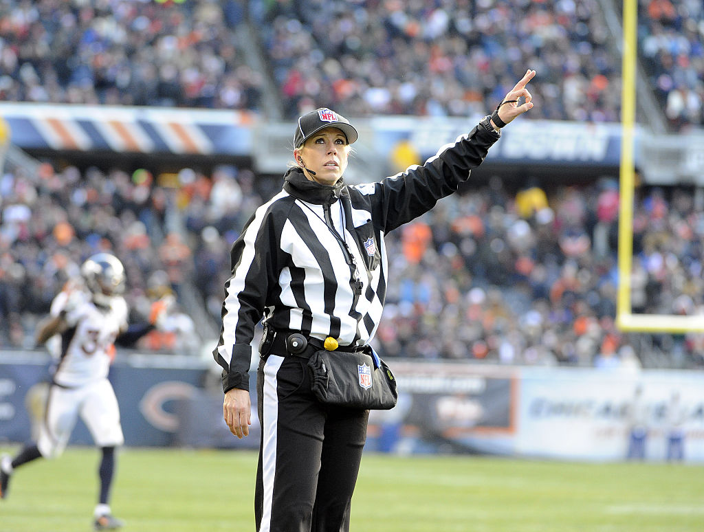 La oficial es la primera mujer que participó en un partido de futbol americano, en los playoffs de la NFL y, por supuesto, ahora lo será también en el juego más importante de la temporada.