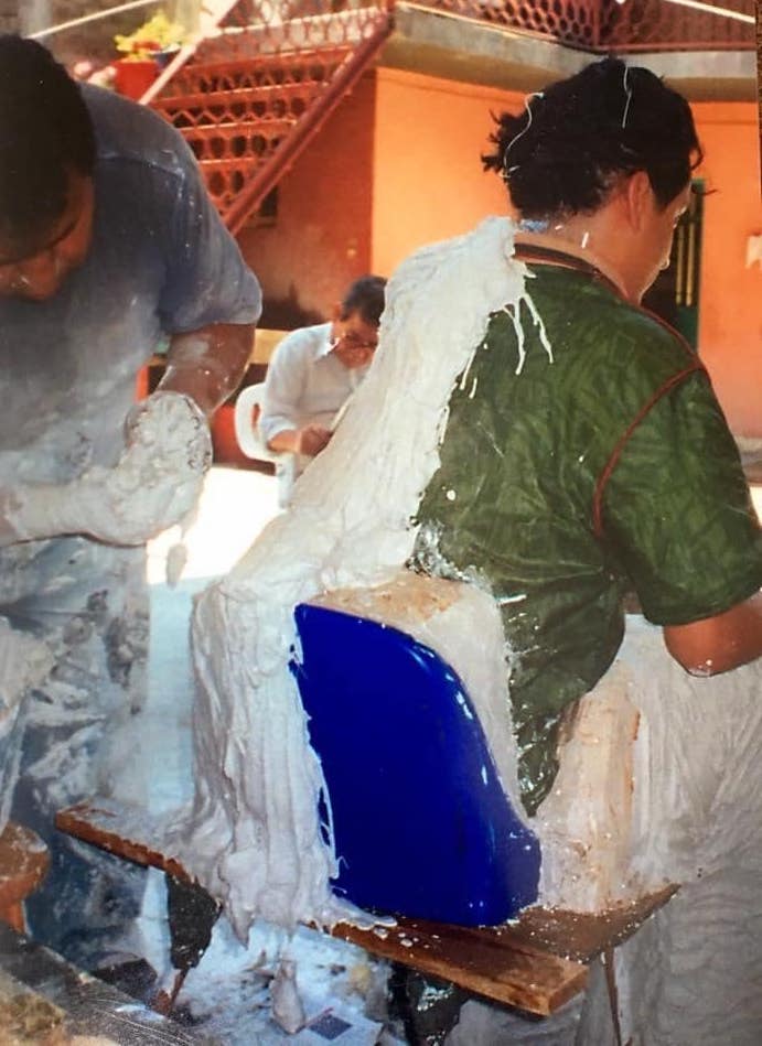 La creación de la estatua estuvo dividida en dos etapas. En la primera trabajaron su cuerpo durante poco más de 11 horas. En ese tiempo, ‘Nachito’ no podía moverse ni mucho menos ir al baño. Permaneció sentado en la misma posición sobre una butaca, para darle forma a su estatua.