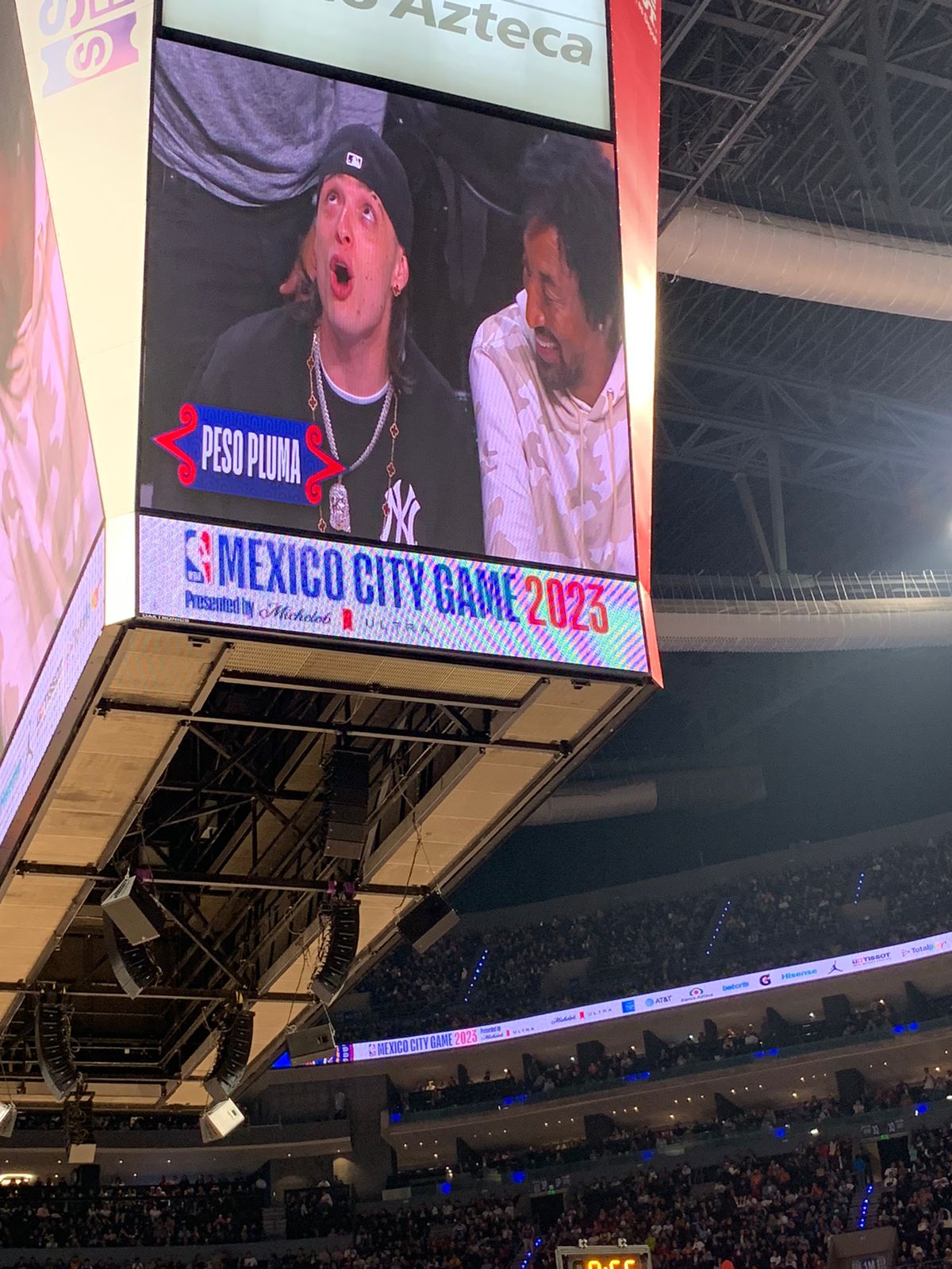 Peso Pluma estuvo en la Arena CDMX para el NBA Mexico Game 2023, pero cuando las pantallas lo mostraron, se escuchó un sonoro abucheo. Scottie Pippen, por el contrario, fue el más ovacionado