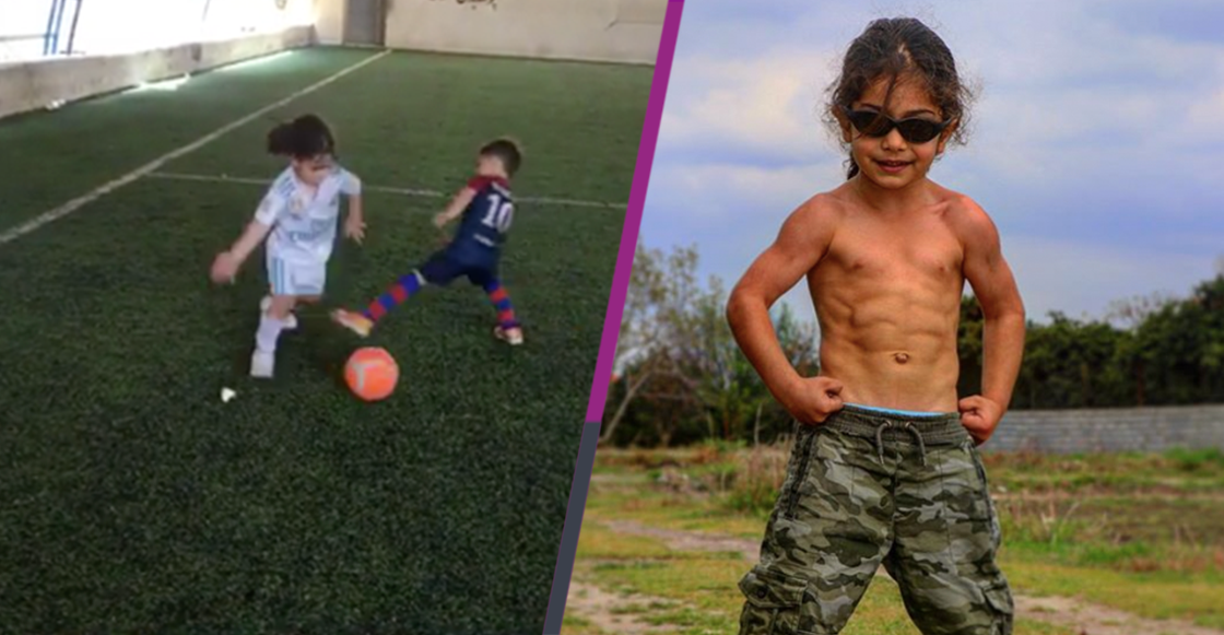 Por increíble que parezca, el cabello largo nos hizo pensar a muchos que se trataba de una niña, sin embargo su nombre es Arat, tiene cinco años, es iraní, es una estrella en Instagram y además de jugar futbol como los Dioses, practica gimnasia, lo que ha provocado a sus corta edad una hipertrofia muscular (un cuerpo súper marcado) increíble.