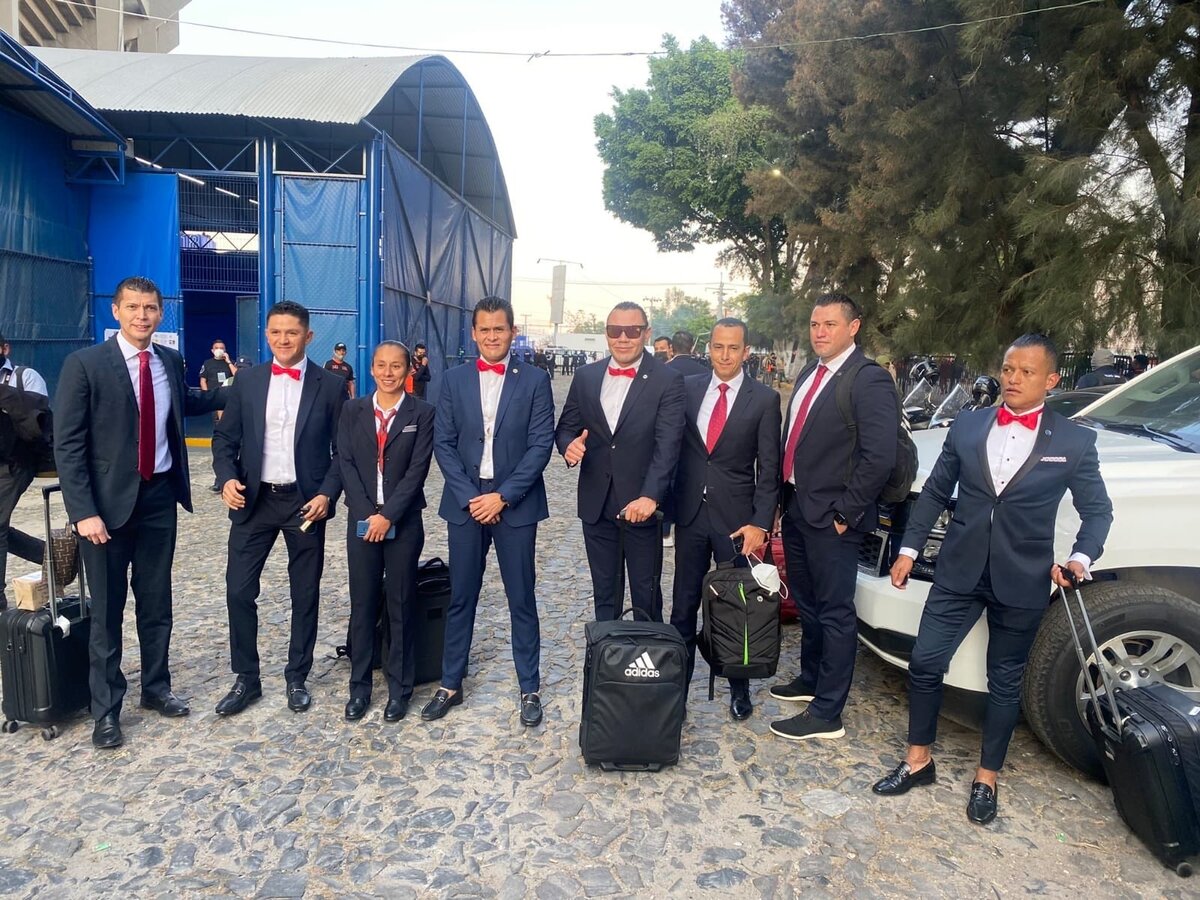 El equipo encabezado por Marco Antonio Ortiz y que incluyó a los elementos del VAR llegó al Jalisco con mucho estilo. Con trajes, moños e incluso corbatas, los árbitros llamaron la atención de las cámaras e incluso de las televisoras.