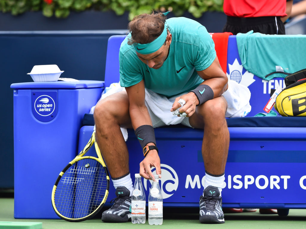 La alineación de las botellas, el gran ritual de Rafael Nadal