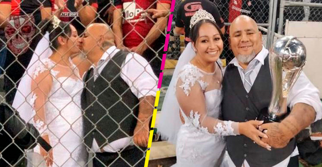Ella lucía el tradicional vestido blanco y él llegó al inmueble en traje, no hubo tiempo de cambiarse. Sin embargo, esto no lo supimos hasta casi una semana después del partido y la historia representa a millones de aficionados rojinegros que habrían hecho lo mismo si hubieran estado en el lugar de estos recién casados.