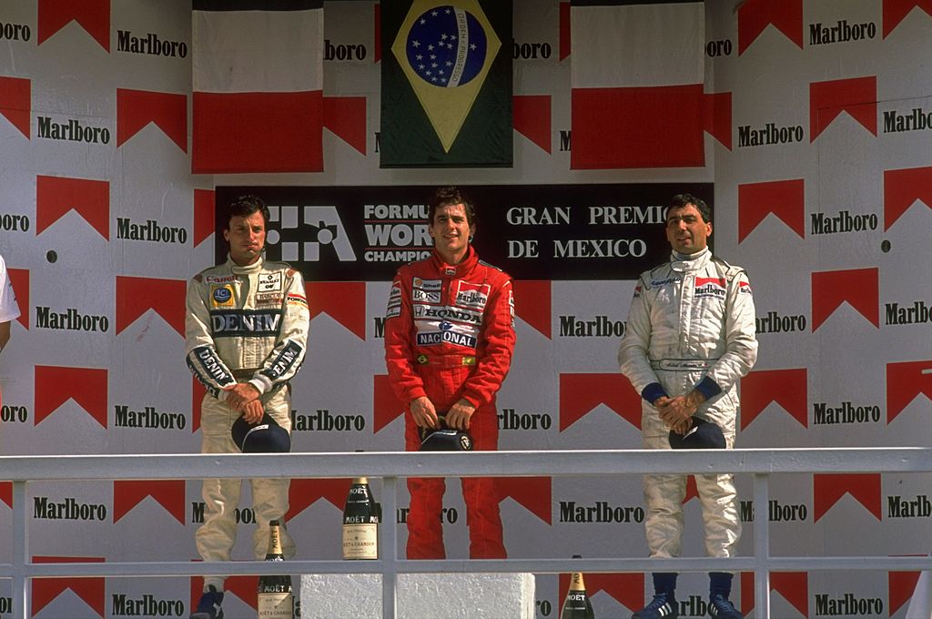 A Ayrton Senna podemos contarle tres podios en el Gran Premio de México de Fórmula 1 -además de su triunfo-, con un segundo puesto y dos terceros lugares.