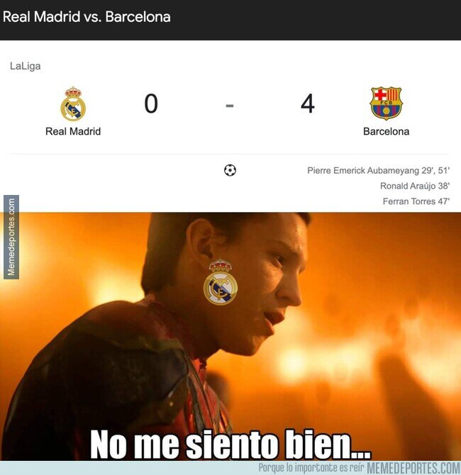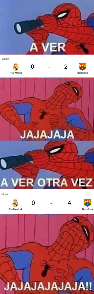 Bienvenidos sean todos los aficionados del Barcelona a este espacio de diversión. Durante muchos años han sido objeto de burlas y memes por las eliminaciones en la Champions, clásicos perdidos, la salida de Lionel Messi, los fichajes… sin embargo, los blaugranas al fin pueden liberarse un poco de esas burlas, luego del triunfo contundente sobre el Real Madrid (4-0) en el Santiago Bernabéu.