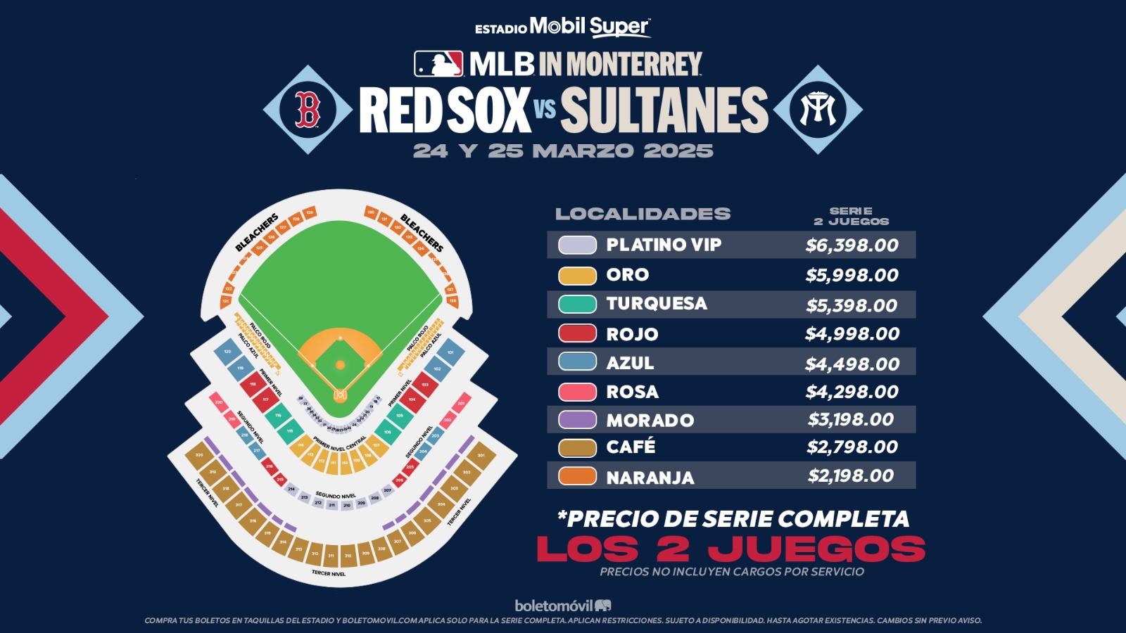 Aquí la lista de precios para el Red Sox vs Sultanes: