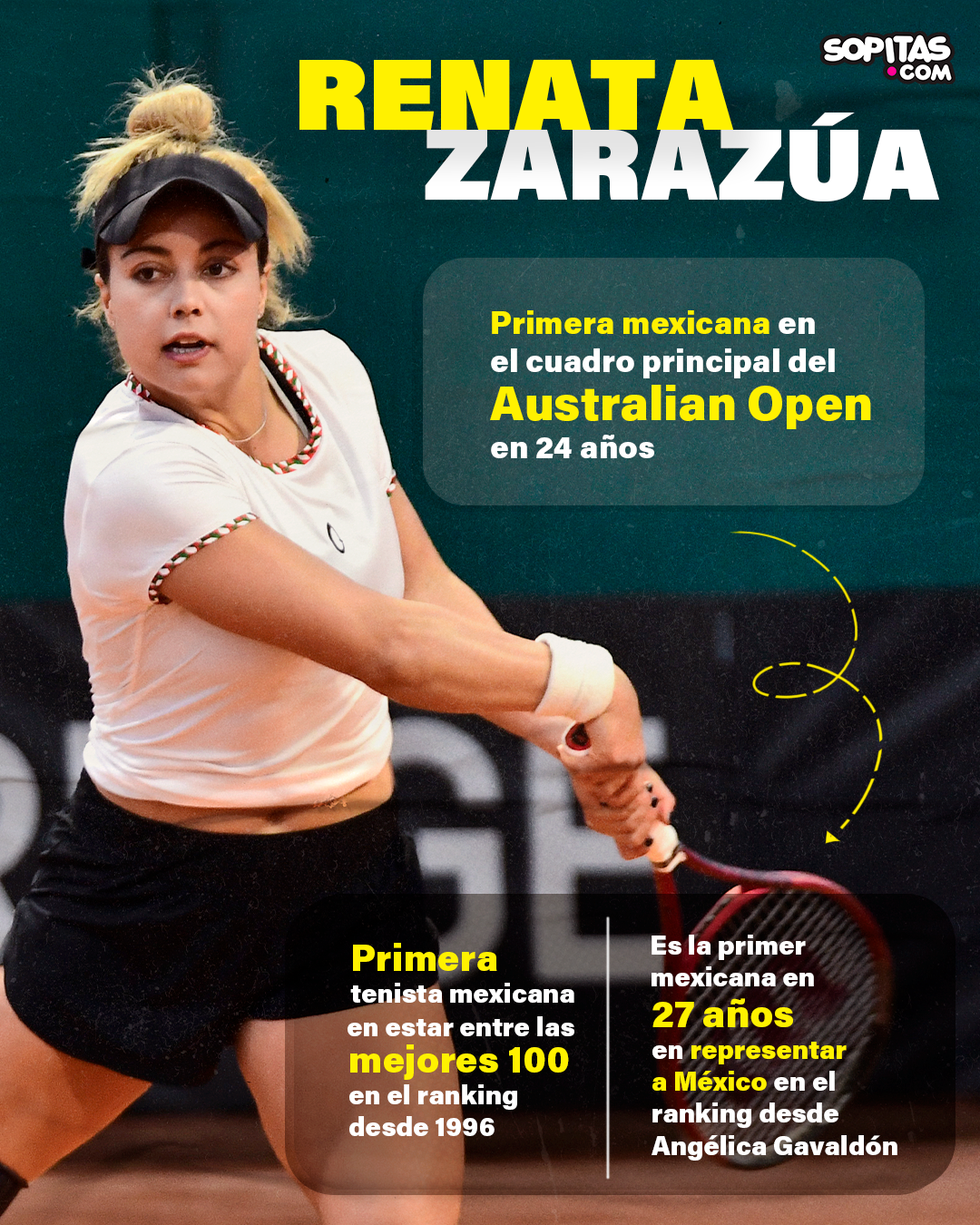 ¿Otro motivo? Es la tercera mexicana en participar en el Australian Open y tuvieron que pasar 24 años para volver a tener presencia mexicana en el Grand Slam.