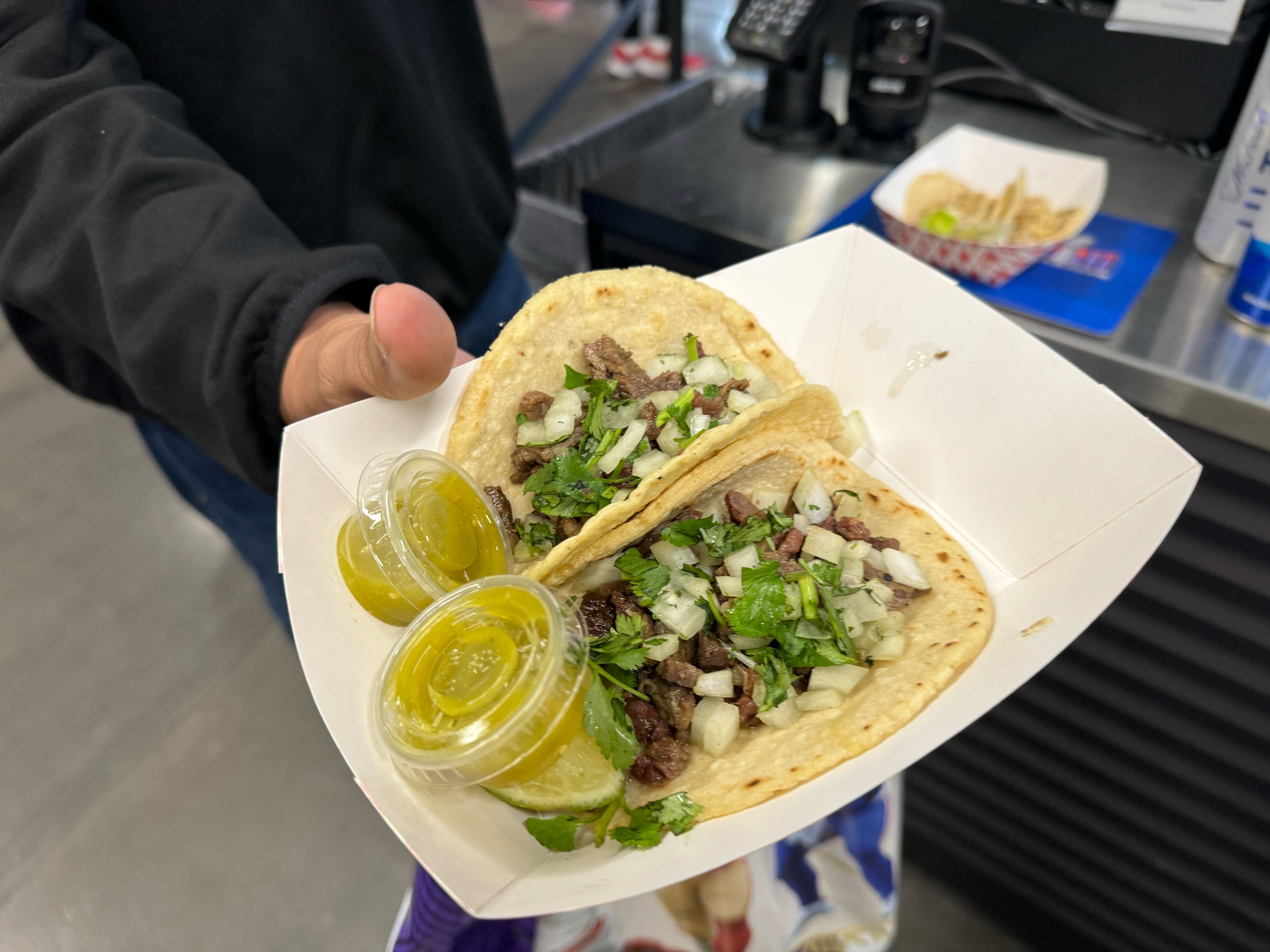 Encuentras desde las clásicas palomitas, los tacos de carnita asada para los más mexas -con tortilla hecha a manopla-, no pueden faltar las hamburguesas y el brisket sandwich que se está poniendo de moda como comida deportiva.