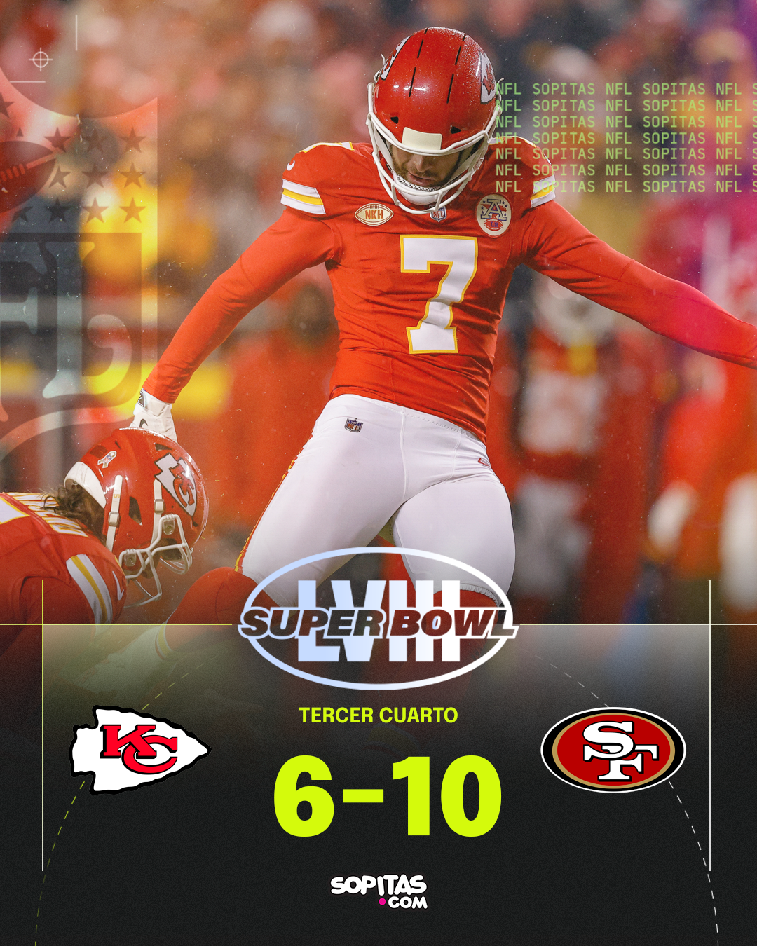 - ¡Qué defensa de 49ers! Lograron detener a Mahomes y limitar a otro gol de campo de Harrison Butker y con cinco minutos de juego para ellos