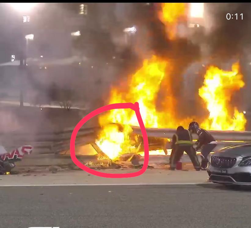 Del otro lado de las vallas, debían existir objetos como botes con agua, que ayudaran a amortiguar un choque, sin embargo, las vallas se doblaron y el auto de Grosjean pasó prácticamente a través de ellas.