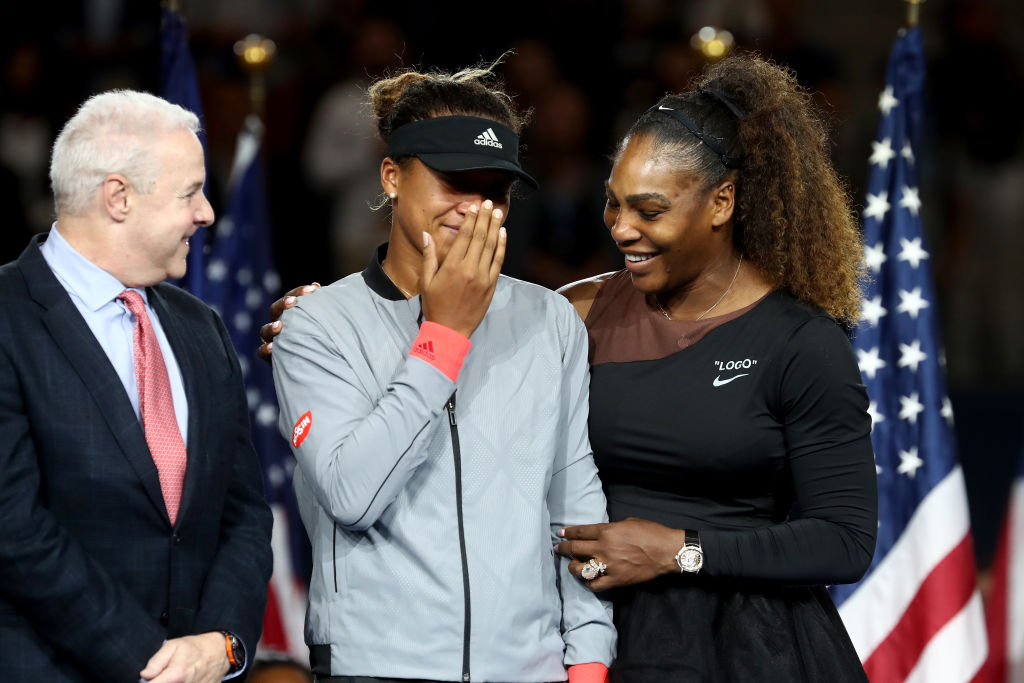 Fue ahí cuando Serena limpió la imagen que había mostrado momentos antes, en los que  rompió una raqueta tras una de sus rabietas, pues consoló a su oponente, reconoció la superioridad de ésta y pidió al público dejar de lado los abucheos y rendirse ante la nueva reina del tenis.