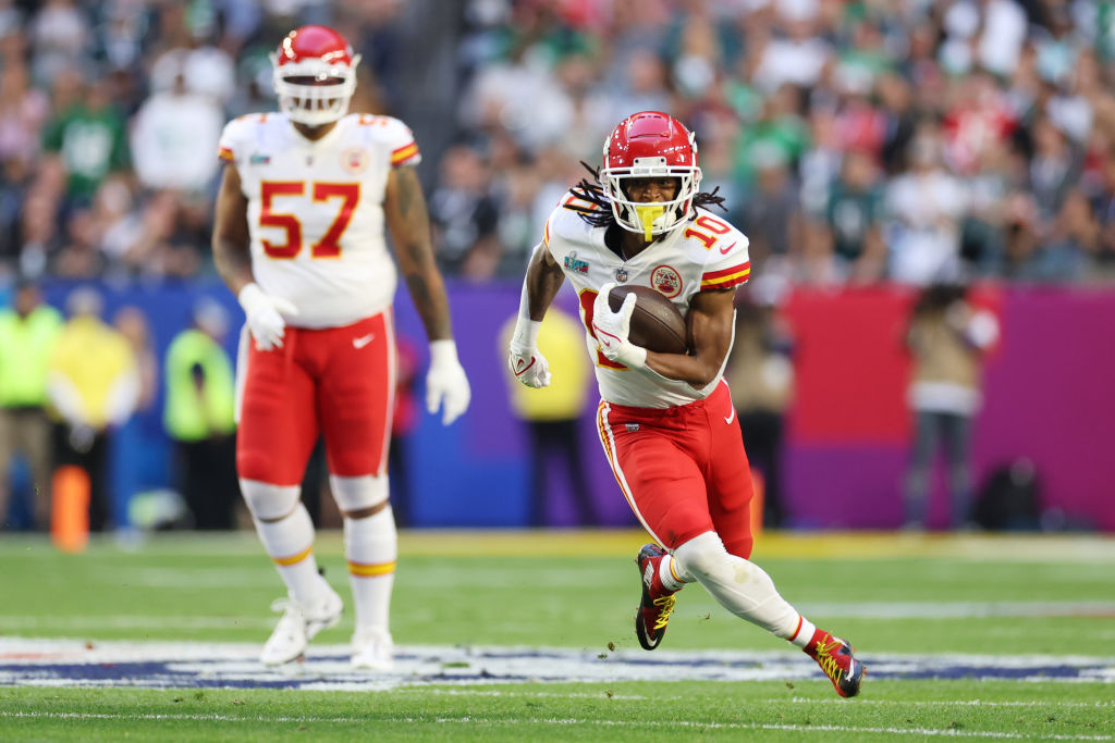 El corredor de Chiefs ya logró vencer a la línea ofensiva de Eagles, por lo menos en una carrera con la que consiguió el primero y diez, además de más de 15 yardas de ganancia