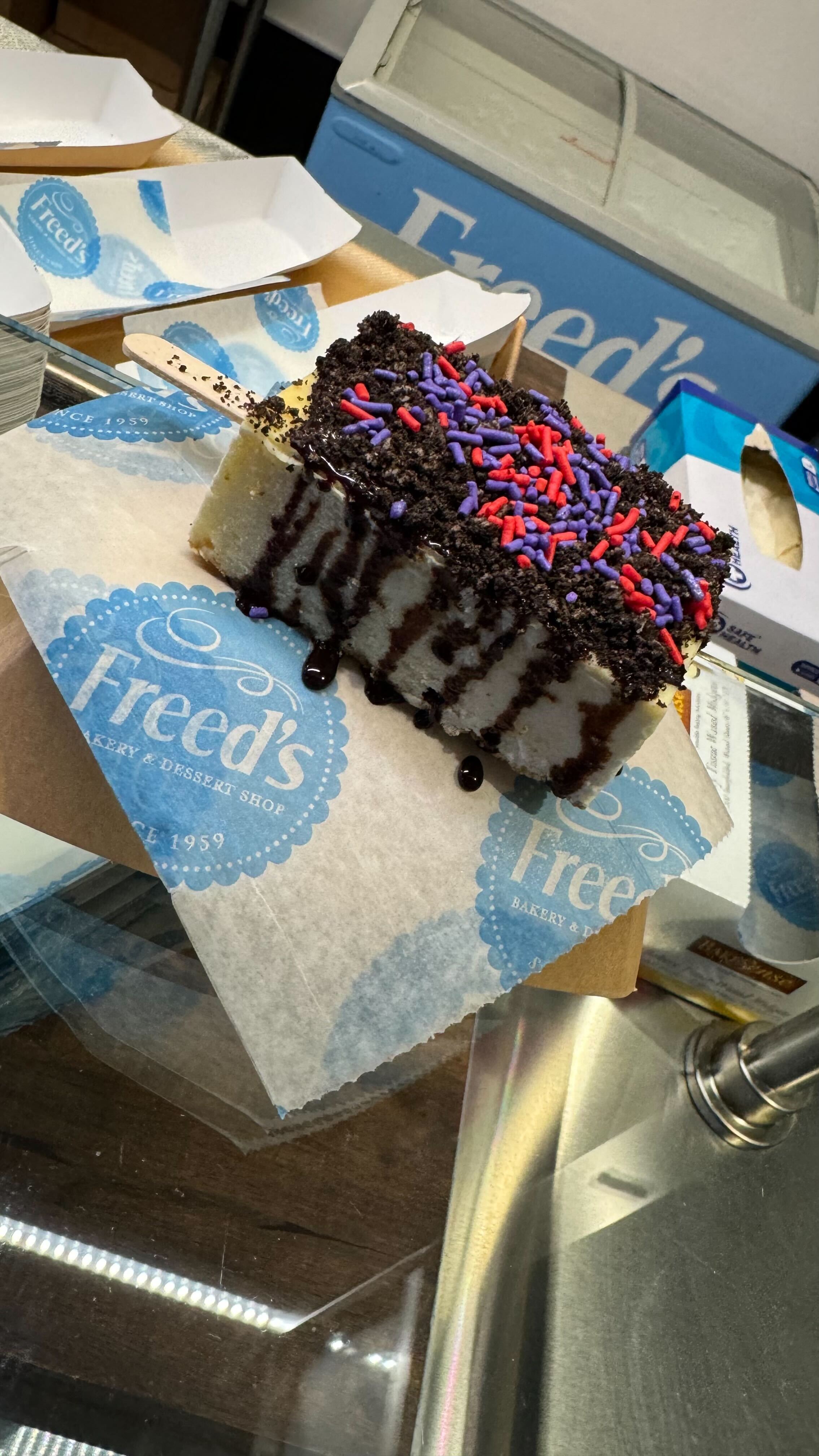 Si lo tuyo lo tuyo es más lo dulce, encontramos un par de postres. El primero es un churro que lleva una capa de chocolate y chispas, y para degustarlo hay que desembolsar nueve dólares (154 pesos). El segundo es un Cheescake con la misma cubierta de chocolate y chispas, y cuesta 12 dólares (205 pesos).