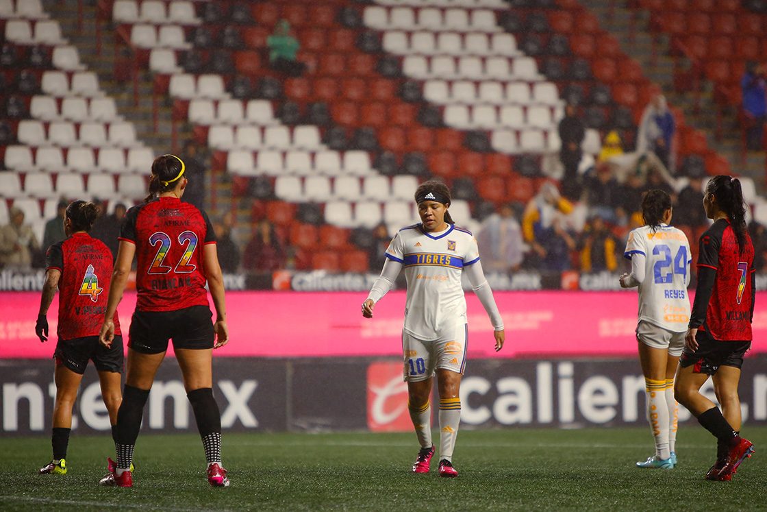 La visita de Tigres Femenil a Xolos se complicó por diversos factores, entre ellos el clima. Es importante recordar que Tijuana tiene cancha de pasto sintético en el Estadio Caliente y esto, combinado con la fuerte lluvia, fue crucial.