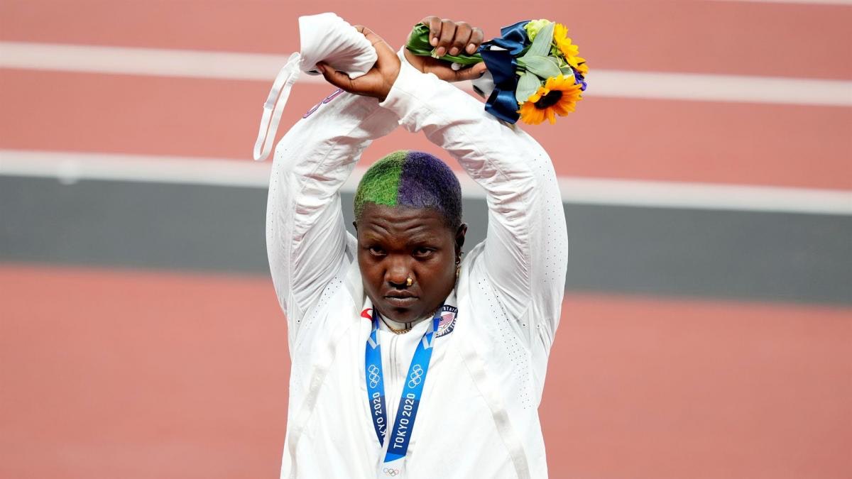 Lo mismo podríamos decir de Raven Saunders, quién tras ganar la medalla de plata en el lanzamiento de peso, protestó en el podio levantando los brazos en forma de “X”, lo que representa “la intersección en la que se encuentran todas las personas oprimidas”.