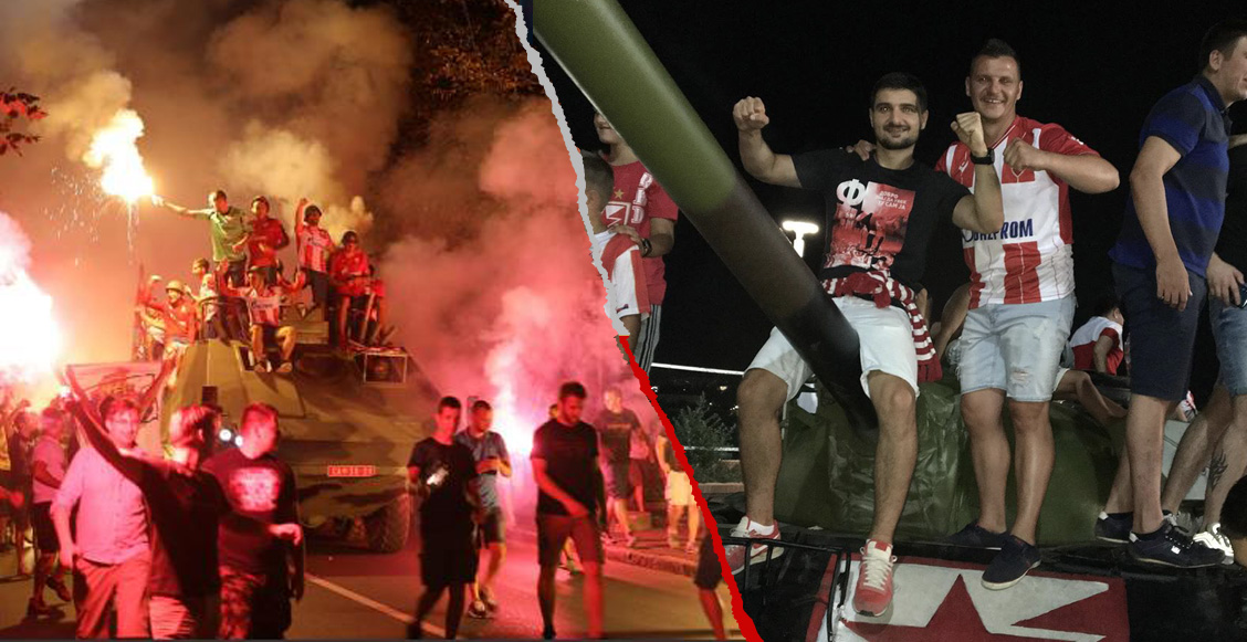 En movimiento: los hinchas del Estrella Roja festejando el pasaje a la Champions ¡en un tanque de guerra! pic.twitter.com/LhKvuzfHeC